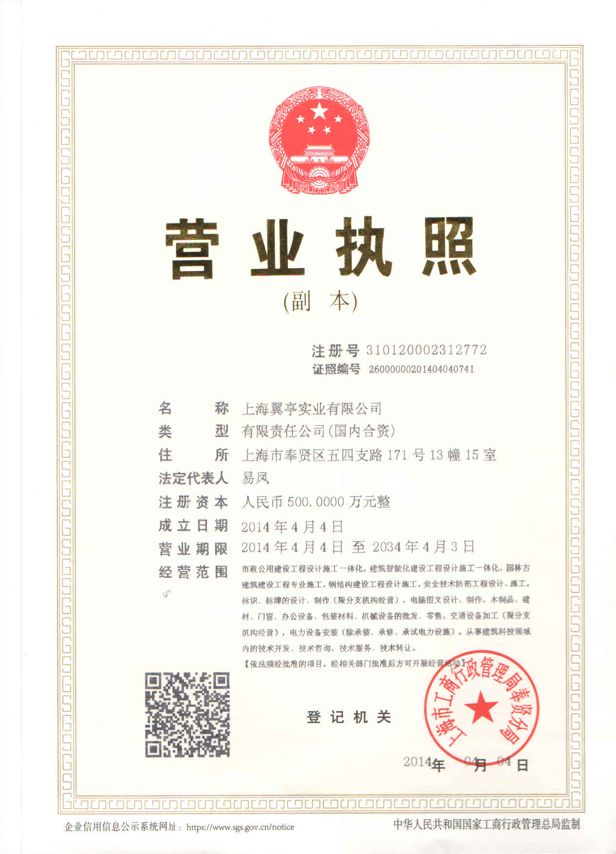 翼亭上海崗?fù)I業(yè)執(zhí)照